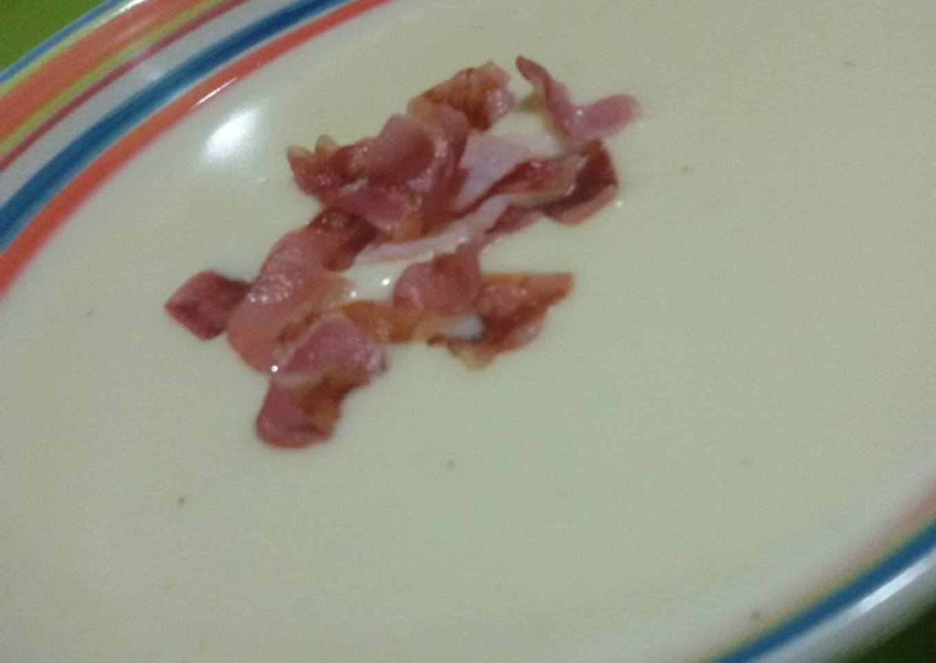 - Ponemos el beicon en un plato sobre papel de cocina y tapado también con papel de cocina. Metemos al microondas 2 minutos a máxima potencia. Ponemos en trocitos sobre la crema.
