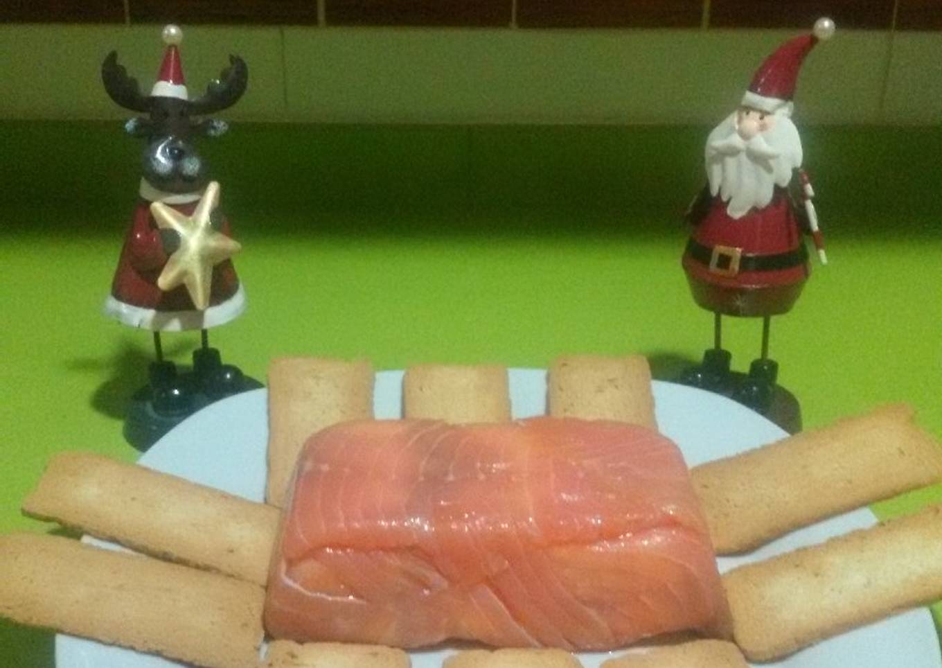 Con el salmón de los bordes y algo mas cubrimos.