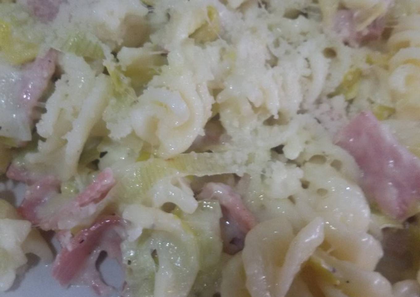 Steps to make to make Fusilli con puerrros y beicon con thermomix