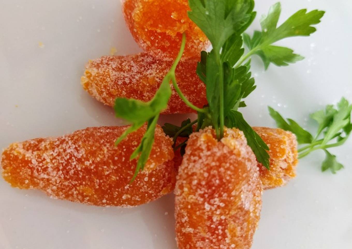 - Con dos cucharillas pequeñas cogeremos porciones de la mezcla que hemos reservado en el bol e iremos rebozandolas en azúcar y dándoles forma de zanahoria. Tras esto ahora sí dejaremos enfriar por completo antes de servir y... Listas para degustar. Si queréis hacerlas total cortaremos ramitas de perejil las lavaremos y pondremos de tallo en la parte superior de la zanahoria