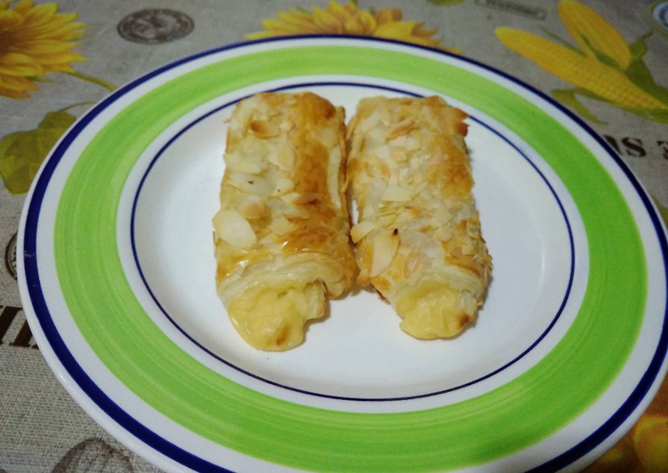 - Una vez fría la crema, extendemos la masa de hojaldre, cortamos y ponemos la crema.