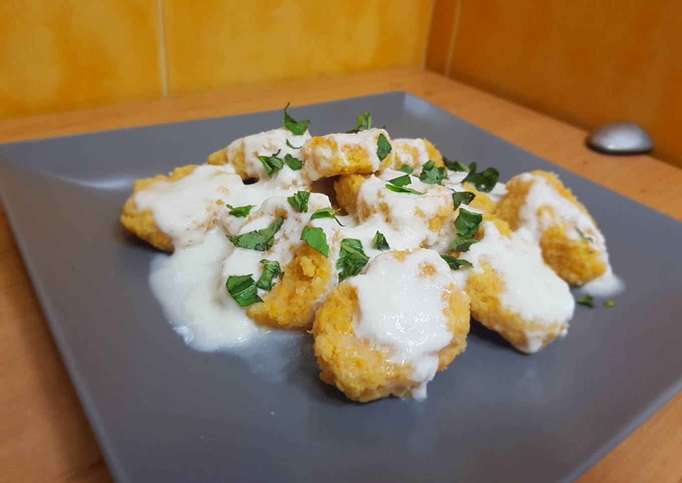 Gnocchi de boniato con salsa de queso de cabra
