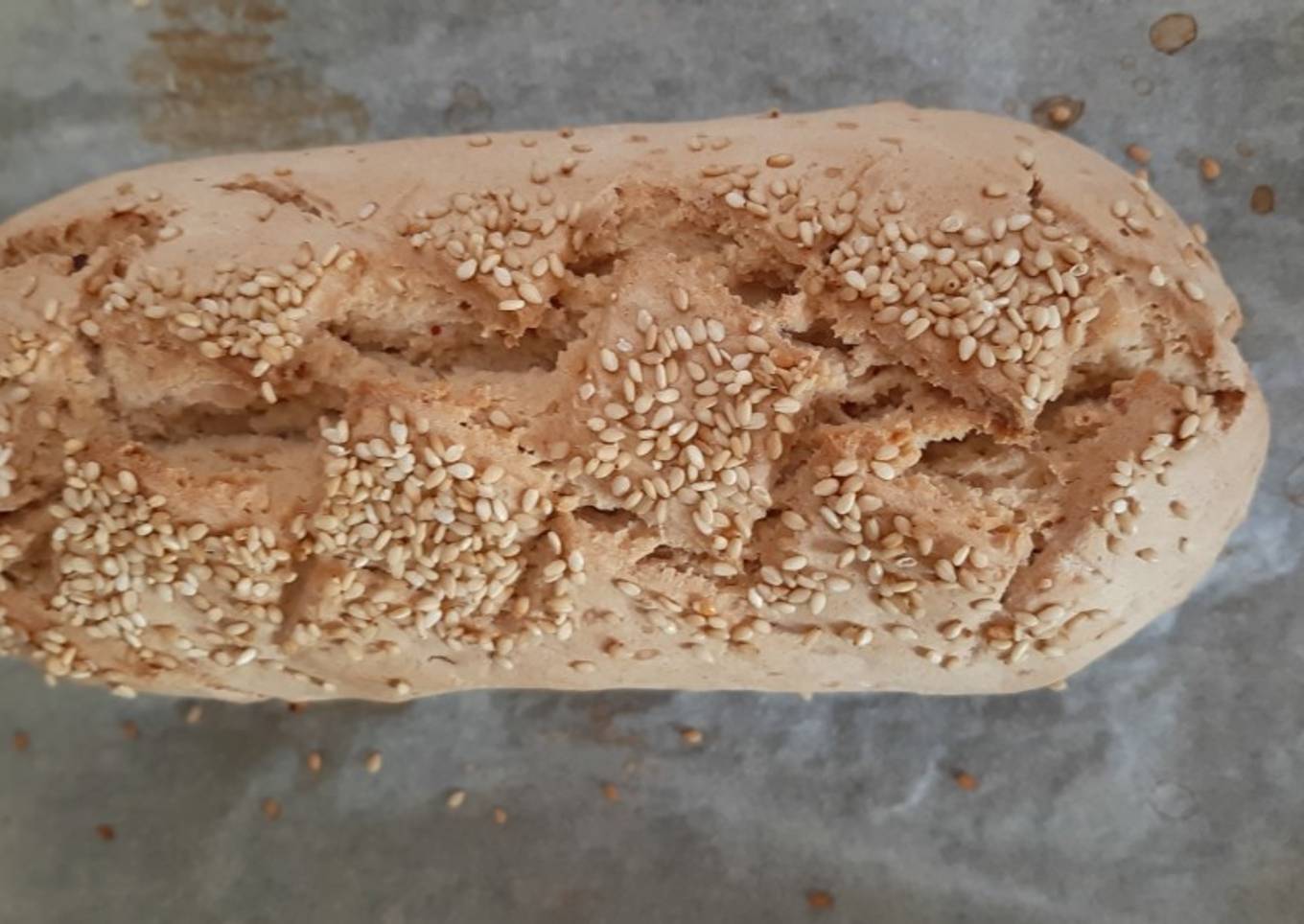 - Pincelamos el pan por encima con un poco de agua y metemos en el horno 35 minutos a 200°. Si no está hecho ponemos otros 5 minutos más y listo para comer