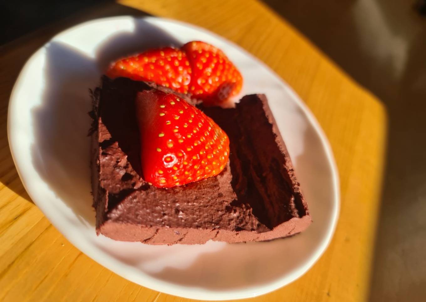 Pastel textura mousse de chocolate y fresas (postre)