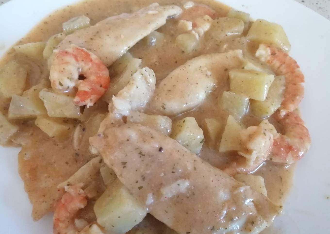 Hello everybody, it's me, Dave, welcome to my recipe site. Today, I'm gonna show you how to make a distinctive dish, Gallo en salsa con patatas y gambas en mambo. One of my favorites food recipes. For mine, I am going to make it a bit tasty. This will be really delicious.