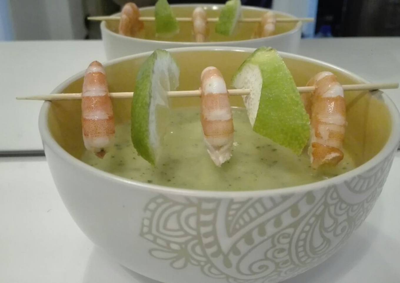 Steps to make to make Sopa de pepino con brochetas de langostinos