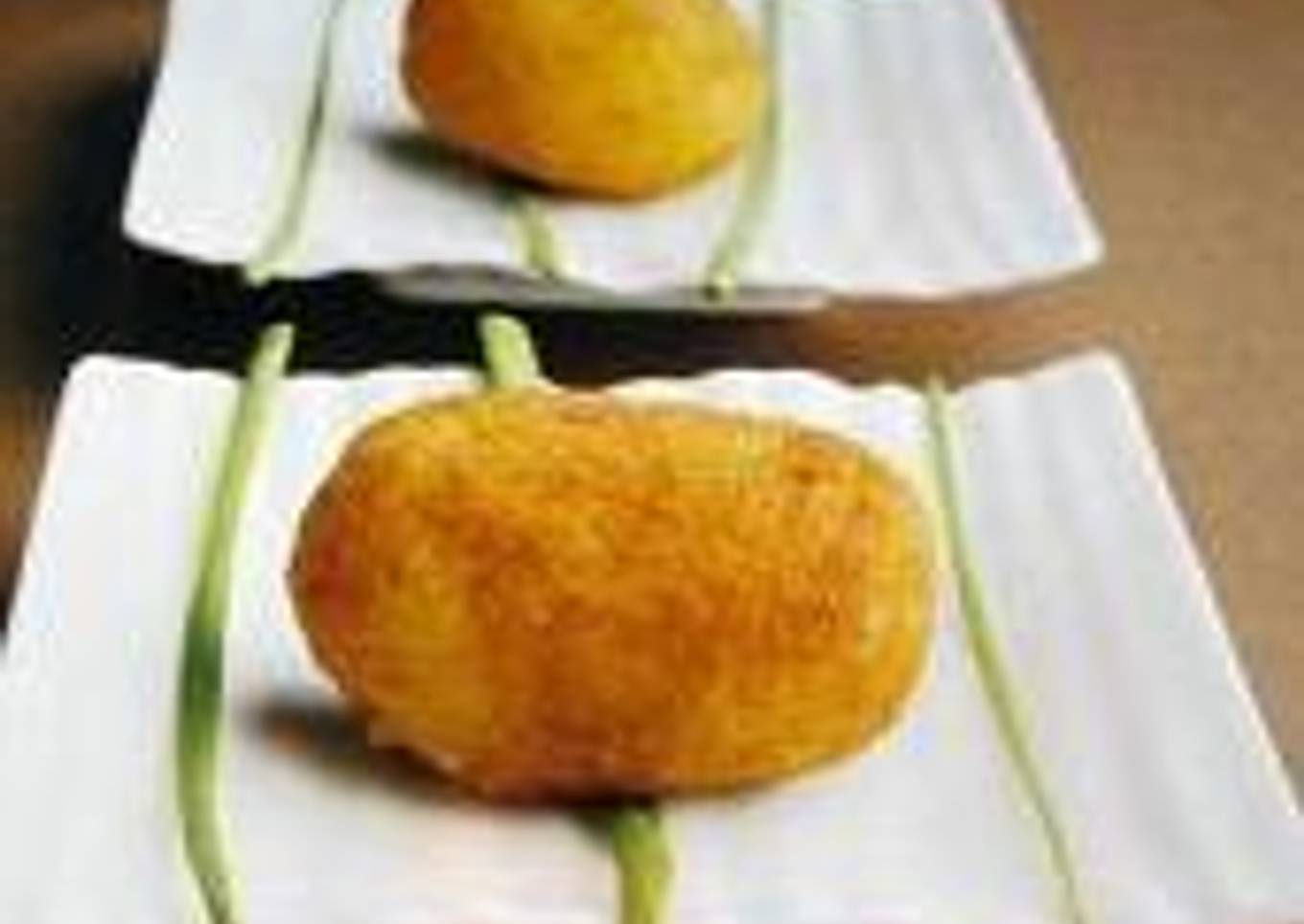 - **Paso 5**: Verter la bechamel en una manga pastelera colocada en el cestillo o en una bandeja humedecida previamente (para que no se pegue la masa), y dejar enfriar. Una vez fría, formar las croquetas y freírlas en aceite bien caliente.